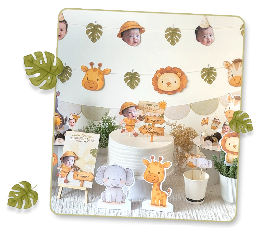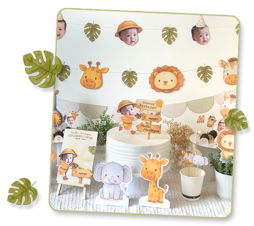 Arquivos digitais práticos para imprimir em casa e montar a festa do seu jeito, no seu tempo.