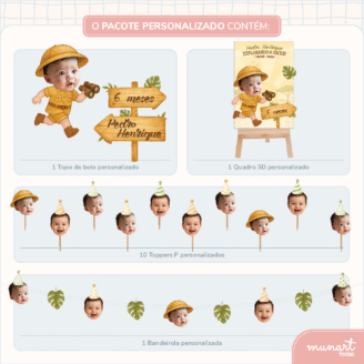 O Pacote Personalizado da Munart vai com o rostinho da criança, nome e idade/mês, criando uma decoração pronta para encantar. Produzido com papel de alta gramatura, já vem pronto para posicionar onde quiser.