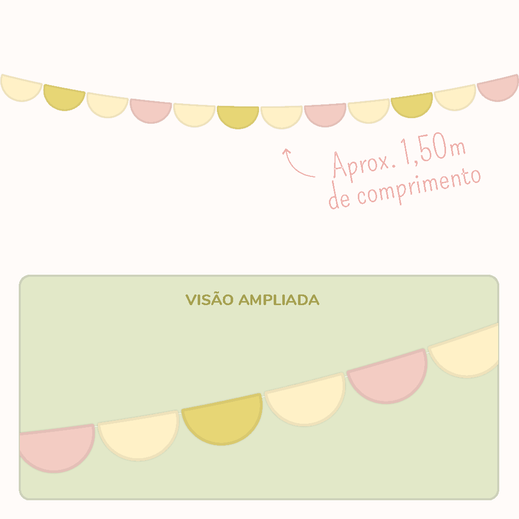 A Bandeirola Meia-Lua da Munart adiciona um toque delicado e elegante ao cenário. Produzida com papel de alta gramatura, já vem pronta e pode ser usada tanto na mesa quanto na parede.