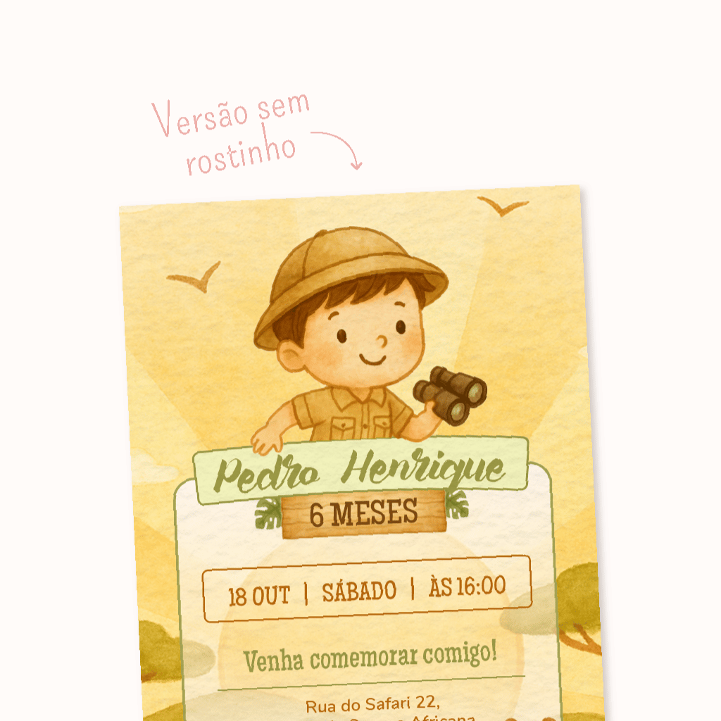 Convite Digital Personalizado: Safari Baby (Menino)