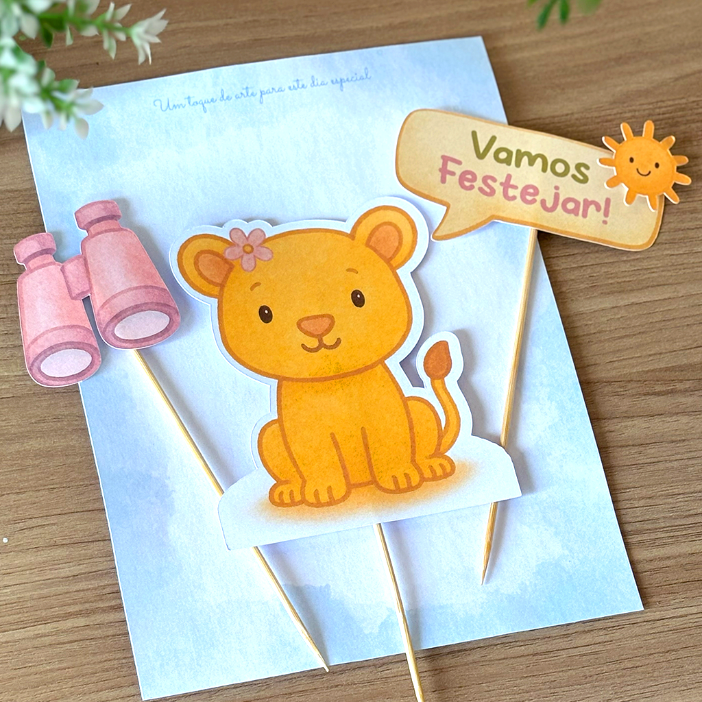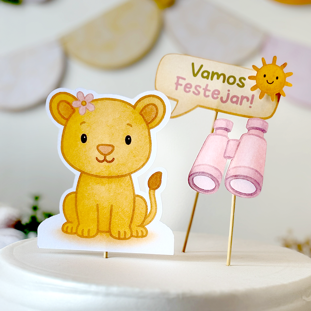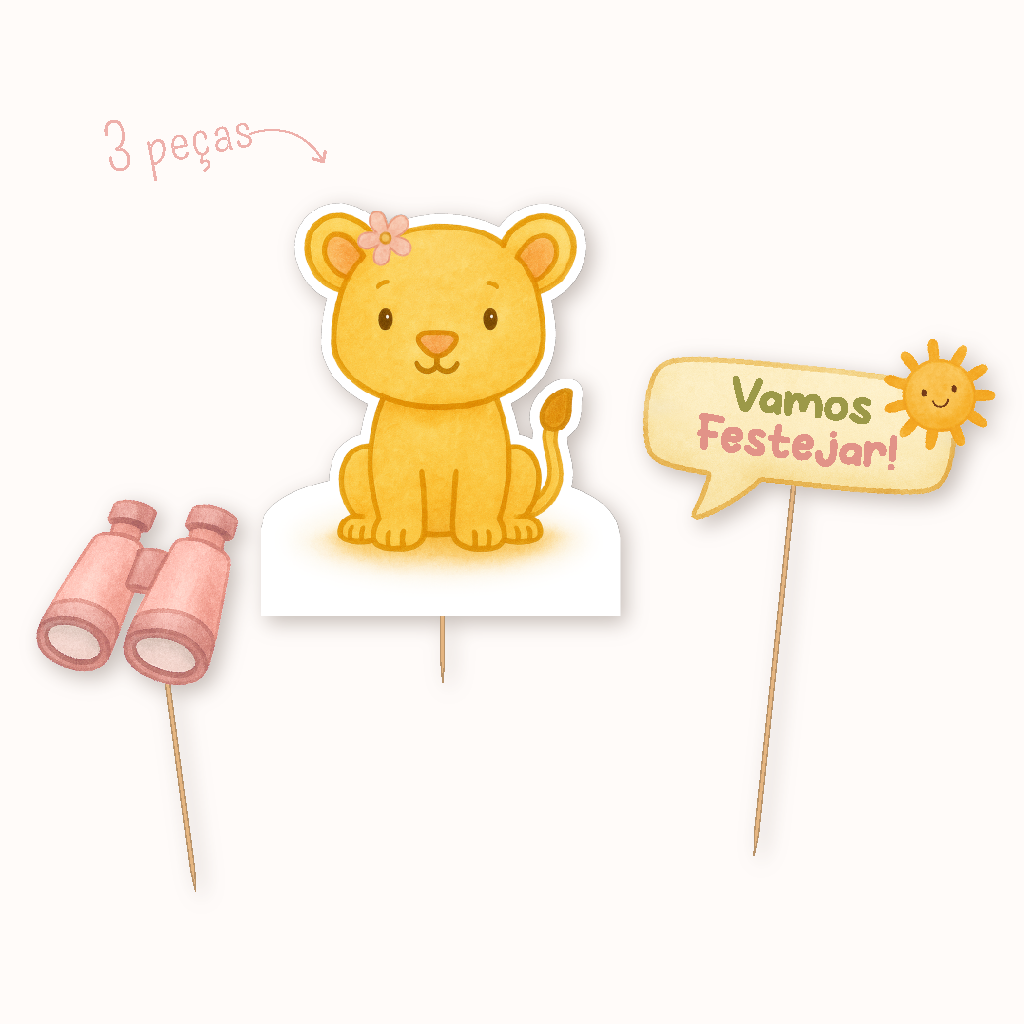 Topo de Bolo: Safari Baby (Menina) – 3pcs